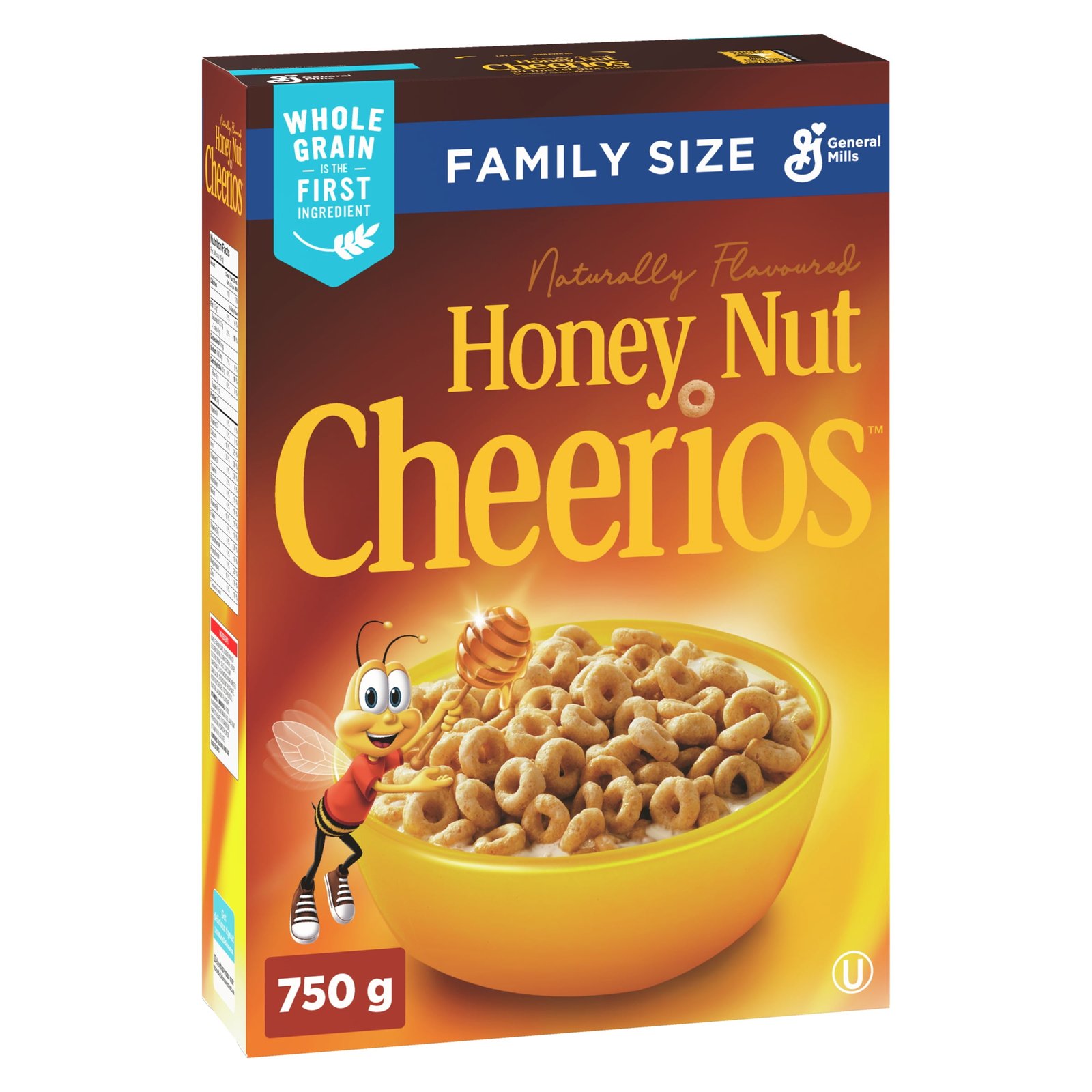 Honey Nut Cheerios Breakfast Cereal. Family Size. Whole Grains. 725 g. 725 g