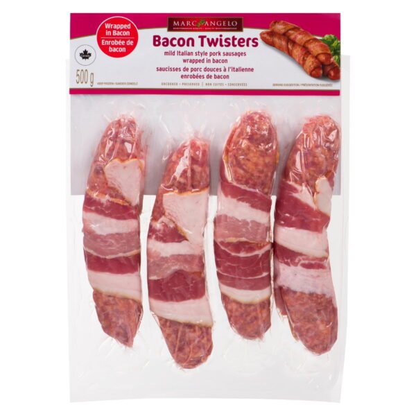 Marcangelo Bacon Twisters Mild Italian Style Pork Sausages. 500 g | 4 x 125g