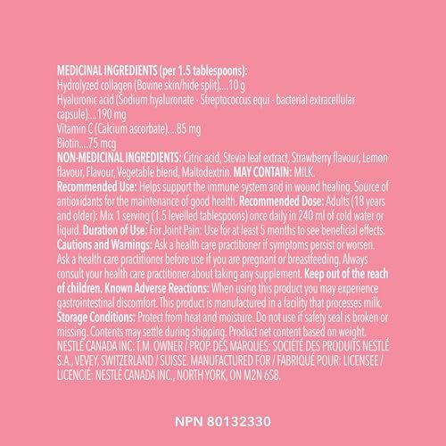 Original price was: CAD11.62.CAD9.90Current price is: CAD9.90.VITAL PROTEINS Beauty Collagen Peptides Strawberry Lemon Powder. Supports Hair. Skin & Nails With Hyaluronic Acid. Biotin & Vitamin C & Helps Form Collagen & Reduce Joint Pain Associated With Osteoarthritis. 201 g