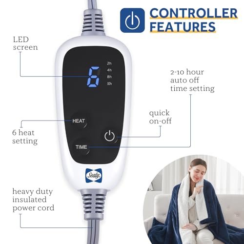 SEALY Heated Throw Blanket. Flannel & Sherpa Electric Throw with 6 Heat Setting & 2-10 Hours Auto Shut Off. Fast Heating & Machine Washable. 50×60 Inch. Navy