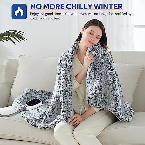 Sealy Electric Blanket Heated Throw 50×60 Soft Double Sherpa Super Cozy with 6 Fast Heating Levels & 2-10 Hours Auto-Off. Over-Heat Protection. Machine Washable. Charcoal
