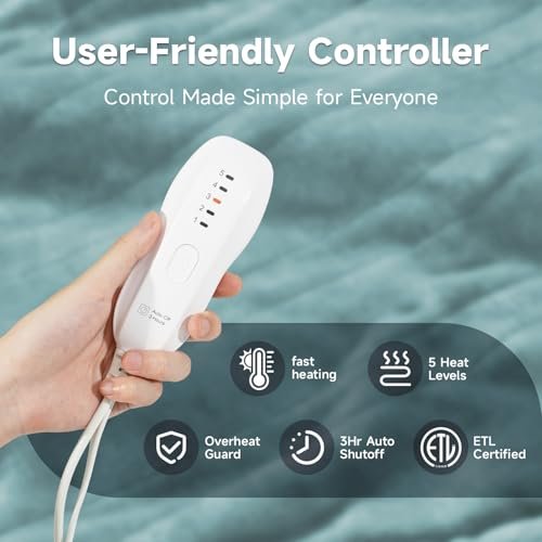 Heated Blanket Throw 50×60. Electric Blanket with 3-Hour Timer Auto-Off & 5 Heating Levels. Machine Washable – Cyan Blue