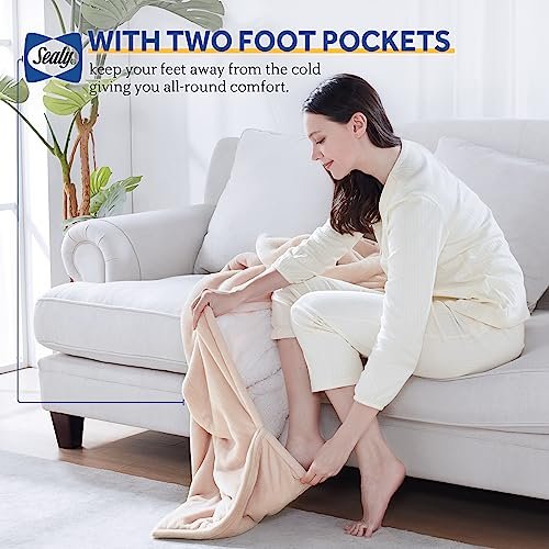 Grey Sealy Electric Blanket with Foot Pocket for Adults. Flannel & Sherpa Heated Blanket Throw with 6 Heating Levels & 2-10 Hours Auto Shut Off. Fast Heating & Machine Washable. 50×62 Inch. Beige