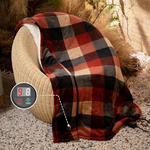 GOTCOZY Heated Blanket Electric Throw 50”X60”- Electric Throw Blanket with One Touch Button 10 Heating Level & 9 Time Settings Heating Blanket. Machine Washable (Check RedBlack)