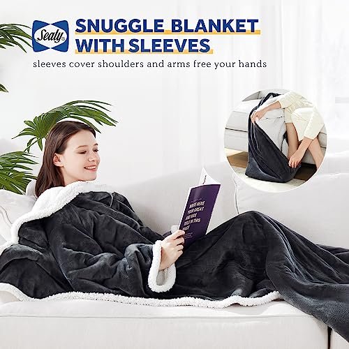 Sealy Electric Blanket Wearable with Foot Pocket. Electric Snuggle Blanket with Sleeves. Flannel & Sherpa Heating Throw with 6 Heat Settings & 2-10 Hours Auto Shut Off. 50 * 70+18. Dark Grey
