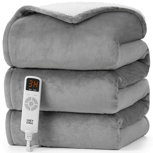 EHEYCIGA Heated Blanket Throw. Electric Throw Blanket Heating Blanket with 9 Heating Levels & 10 Hours Auto Off. Soft Cozy Sherpa Portable Washable Blanket with Fast Heating Grey. 50 x 60 Inches