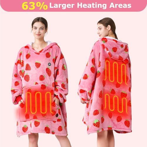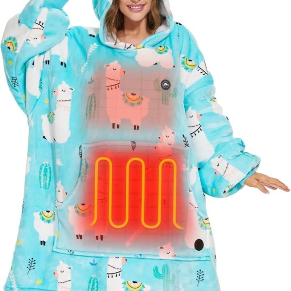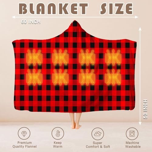 Type-C Heated Hoodie Throw Blanket Gift for Women – USB 9V 18W Red black plaid Print Wearable Electric Blanket with Hood. 8 Graphene Zones. 3 Heat Levels–Gift for Mom. Wife. Girlfriend. Travelers