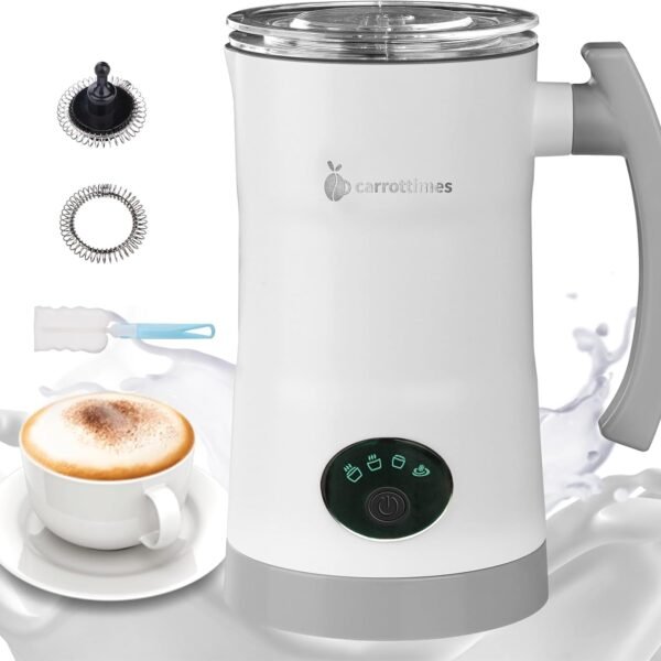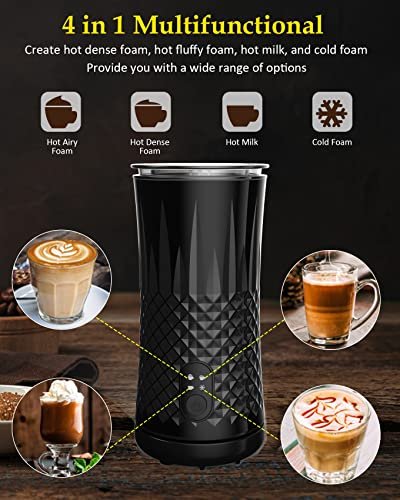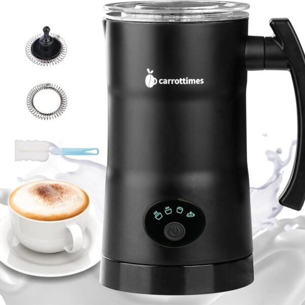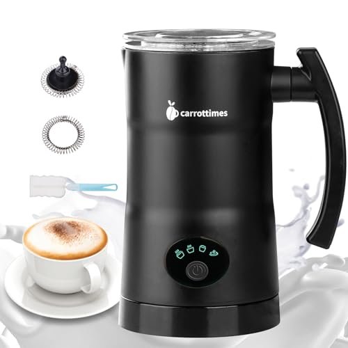 carrottimes Milk Frother. 4-in-1 Electric Milk Steamer. 11.8oz/350ml Large Capacity for Auto Warm/Cold Foam. Heating Milk for Coffee. Latte. Macchiato. Cappuccino. Hot Chocolate (Black)