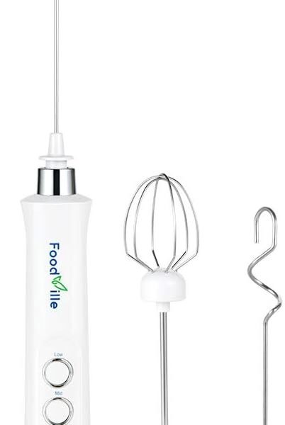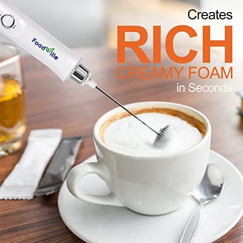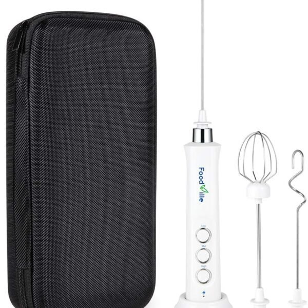 FoodVille MF09 3 in 1 Rechargeable Milk Frother Handheld with Charging Stand & 3 Stainless Steel Whisks (White Without Case)