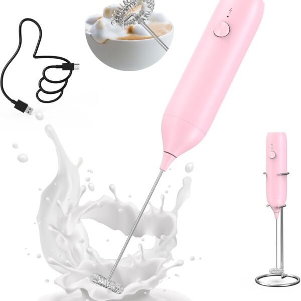 CIRCLE JOY Milk Frother Handheld with Stainless Steel Stand Rechargeable Milk Foamer Electric Mini Drink Mixer with Whisk for Coffee. Cappuccino. Lattes. Frappe. Matcha and Hot Chocolate