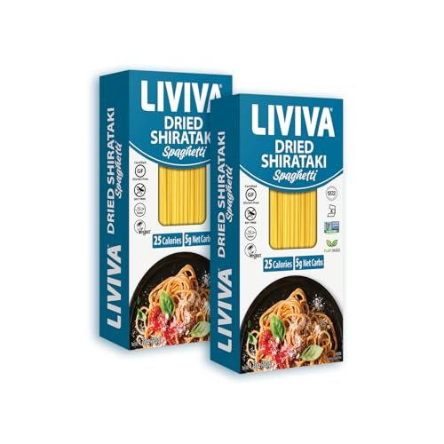 LIVIVA Dried Shirataki Spaghetti – Keto. Gluten Free. Vegan. Halal. Kosher. Non-GMO. Plant-Based – Taste & Cook like regular – Ready to Eat in minutes (2 Pack)