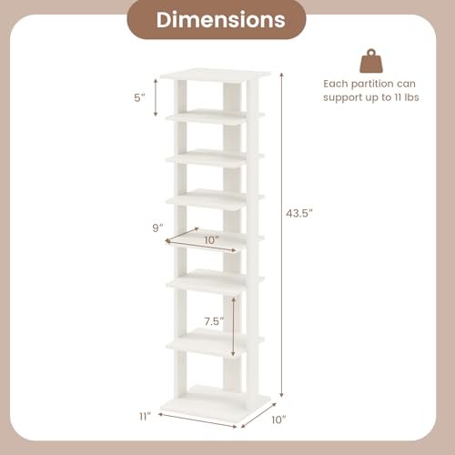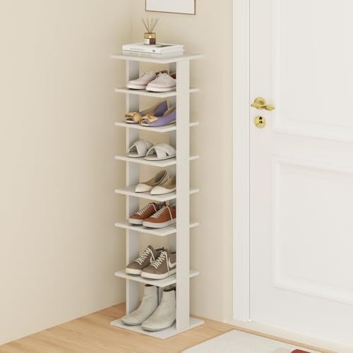 Tangkula 8 Tiers Vertical Shoe Rack. Patented Space Saving Corner Shoe Rack for 7 Pairs. Narrow Shoe Stand for Front Door Entryway