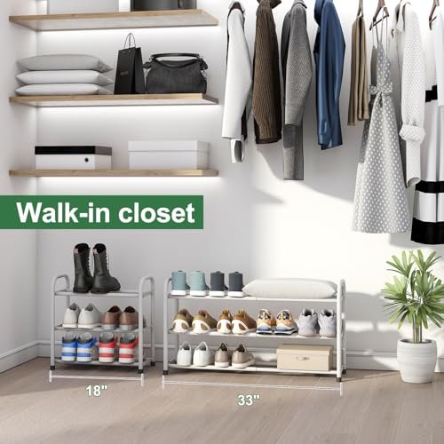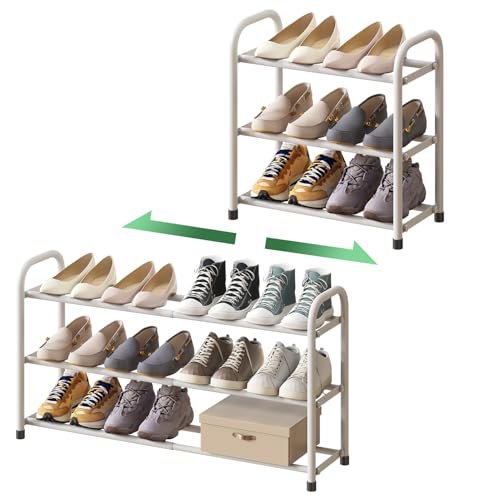 Shoe Rack for Closet. 3-Tier Expandable Shoe Organizer for Closet. Metal Shoe Shelf Storage. White Shoe Rack for Entryway Closet Doorway
