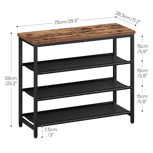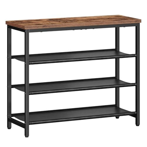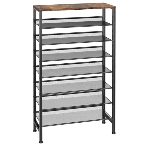 HOOBRO Shoe Rack. 4 Tier Shoe Organizer. Adjustable Shoe Shelves. Flat or Slanted. Holds 9-12 Pairs. Stable and Durable for Entryway. Closet. Rustic Brown and Black BF09XJ01