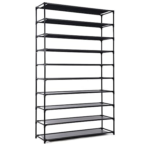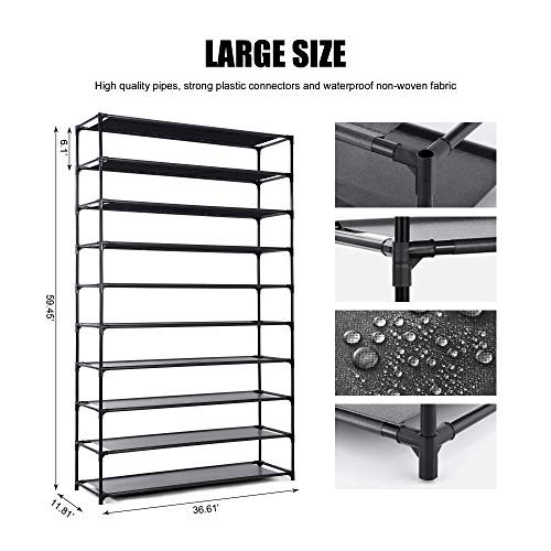 HODYANN 50 Pairs Shoe Rack.10 Tiers Shoe Rack Organizer for Bedroom/Closet/Entryway. Non-Woven Fabric Shoe Storage. Space Saving Shoe Shelf. Black (BLACK-1)
