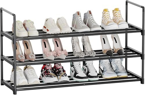 Shoe Rack. 3 Tier Shoe Organizer. Metal Shoe Rack for Closet. Shoe Storage for Front Door Entrance. Closet & Entryway. Easy to Assemble