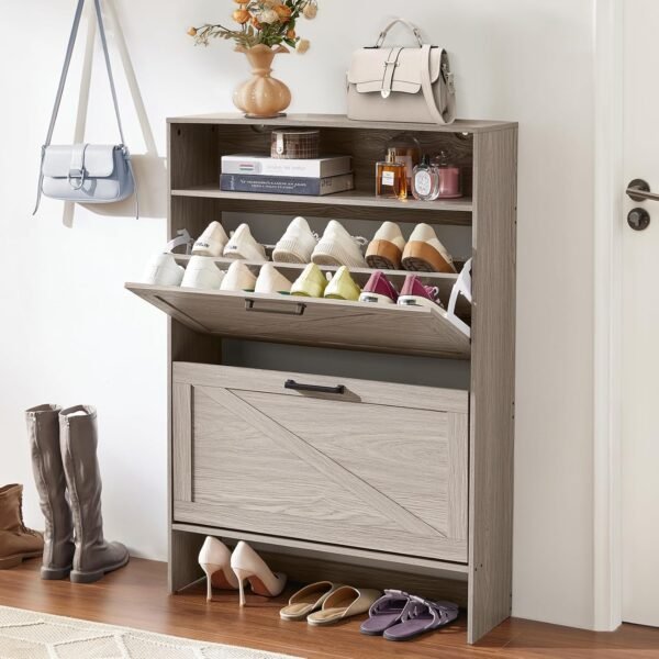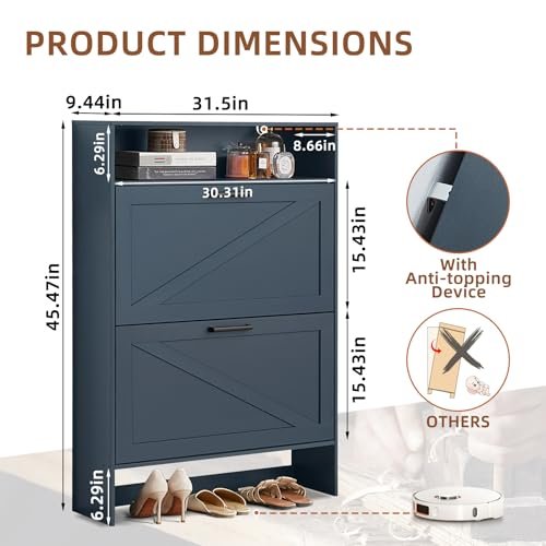 White RWYHG Shoe Storage Cabinet with 2 Flip Drawers.Farmhouse Narrow Shoe Organizer Cabinet with Legs.Freestanding Hidden Slim Shoe Rack with Open Storage for Entryway.Hallway. Foyer. Blue
