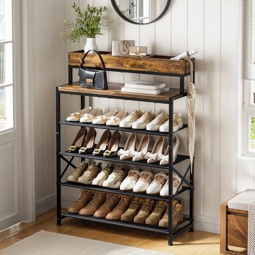HOOBRO Shoe Rack. 5-Tier Shoe Storage Unit. Shoe Organizer Shelf for 16-20 Pairs. Saving Space. Durable and Stable. for Entryway. Hallway. Closet. Dorm Room. Industrial. Rustic Brown BF58XJ01