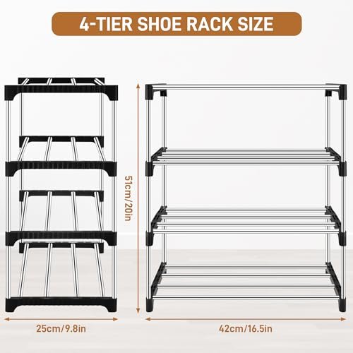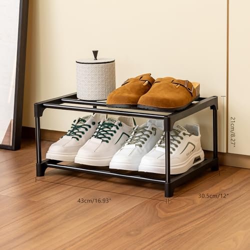 Small Shoe Rack Stackable Shoe Rack Small 2 Tier. Black Shoe Racks Storage Organizer. Durable Shoe Stand Metal Shoe Rack for Narrow Space Closet Entryway Hallway