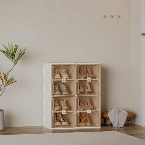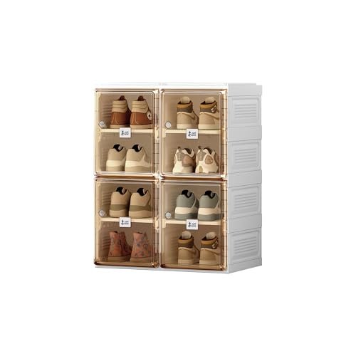 ANTBOX Shoe Organizer Storage Box. Portable Folding Shoe Rack for Closet with Magnetic Clear Door.Large Sneaker Cabinet Bins All-in-one Sturdy Easy Assembly 4 Layers-8 Grids