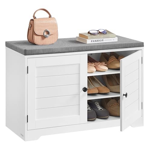 VASAGLE Shoe Bench with Storage. 3-Tier Entryway Shoe Bench Cabinet. White Shoe Rack Bench with Adjustable Shelves. 35.5 x 81 x 52.5 cm. for Hallway. Bedroom. Cloud White and Dove Gray ULSB034W01