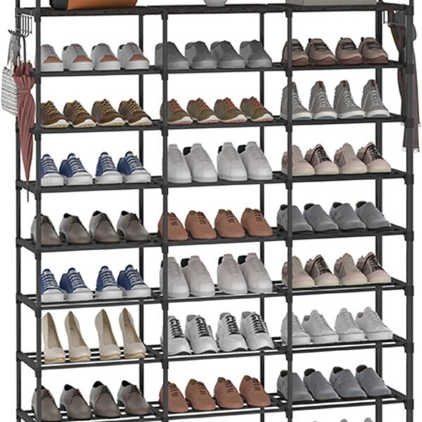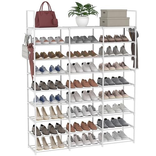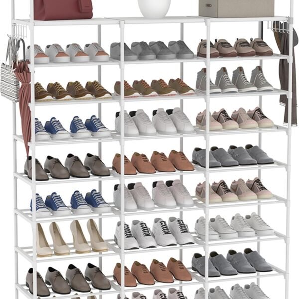 White MIZXCIOM Shoe Rack 9-Tier Shoe Storage Shelf. 54 Pairs Metal Shoe Storage Rack Organizer. Space Saving Tall and Boots Storage Shelf Holder for Entryway. Closet. Garage White