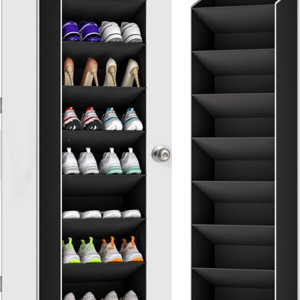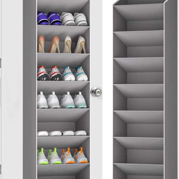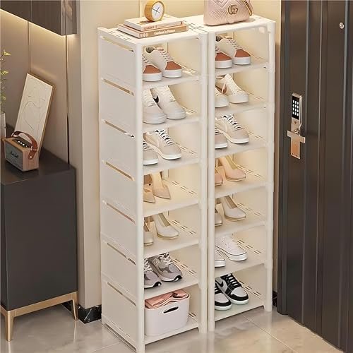 Original price was: CAD19.97.CAD5.99Current price is: CAD5.99.Vertical Shoe Rack. 8 Tiers Adjustable Narrow Shoe Shelves. Tall Shoe Rack. Free Standing Shoe Stand. Space Saving Stackable Shoe Tower Shelf for Living Room. Closet. Entryway (White)
