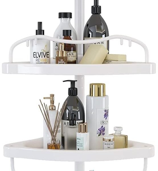 Original price was: CAD37.99.CAD11.40Current price is: CAD11.40.CALCHELE Shower Caddy Corner for Bathroom. Rustproof Bathtub Shower Storage Organizer for Shampoo Accessories. 4-Tier Adjustable Shelves with Tension Pole. 54 to 114 Inch White