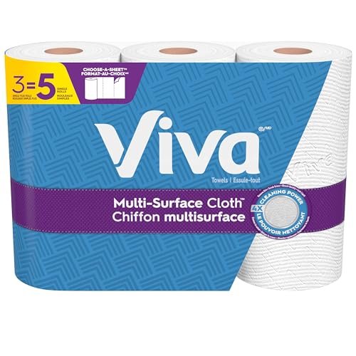 Viva Multi-Surface Cloth Paper Towels. Choose-A-Sheet 3 Big Rolls = 5 Regular Rolls (83 Sheets Per Roll)