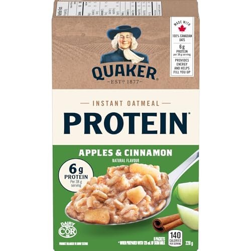Quaker High Protein Apples & Cinnamon Instant Oatmeal Cereal. 6 Packets. 228 g