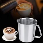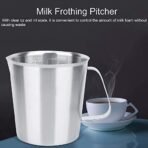 • Internal stamping scale. clear and precise. Labeled with two scales of ounce and milliliter. it is convenient to control the amount of milk foam without causing waste.