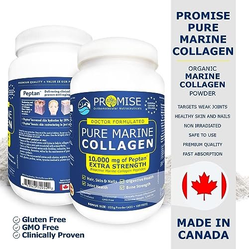 - EUROPEAN CERTIFIED COLLAGEN: The Promise Pure Marine Collagen Powder is Gluten-Free. GMO-Free. and does not contain soy. nuts. corn. wheat. or yeast. It is made in Canada using wild caught fish – Halal and Kosher Certified.