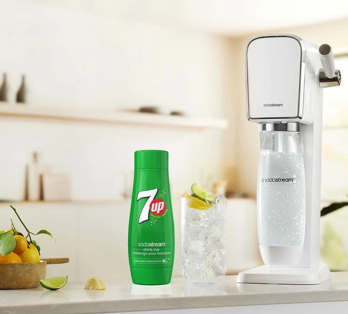 Your Favourites on Demand! Make your favourite 7up soft drink in the comfort of your own home using SodaStream and the 7up Flavour Drink Mix. Each 440 ml bottle makes about 9 liters of ready to drink beverage. Pro tip: When using Pepsi or 7up flavours. high carbonation level is recommended.• When using Pepsi or 7up flavours. high carbonation level is recommended.