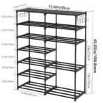 • 【STURDY & DURABLE SHOE RACK】: 7-Tire Shoe rack is made of powder-coated metal tubes and high quality plastic parts. The metal frame is thickened. which enables this shoe rack load much heavier duty. This metal shoe rack is rust-resistant. maintains the nice and versatile while enhancing the service life.