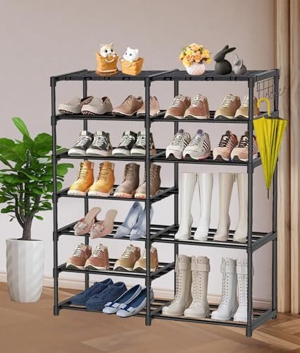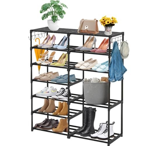 • 【STURDY & DURABLE SHOE RACK】: 7-Tire Shoe rack is made of powder-coated metal tubes and high quality plastic parts. The metal frame is thickened. which enables this shoe rack load much heavier duty. This metal shoe rack is rust-resistant. maintains the nice and versatile while enhancing the service life.