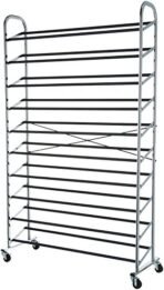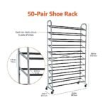 The shoe rack offers exceptionally convenient vertical space for organizing and neatly displaying up to 50 pairs of shoes–anything from men’s oxfords. loafers. slippers. and flip-flops to women’s wedges. heels. booties. sandals. and sneakers. Ten tiers of nonslip tubes hold shoes securely in place while positioning them slanted slightly forward for easier viewing. Grab the desired pair and head out the door–no more wasted time spent searching.