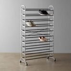 Equipped with four smooth-rolling wheels. the portable shoe rack can easily be moved from one location to another. Once it’s in position. simply lock the wheels to keep the shoe rack securely in place.
