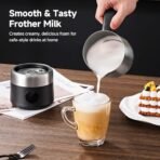 • Hi-Tech Heating: No more scorched milk! Unlike cheap frother that burn milk. our precision system heats evenly at the perfect temperature (60-70°C) – preserving sweetness and preventing protein breakdown. Our mousseur a lait electrique is Ideal for specialty coffee
