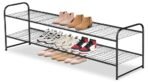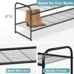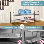 - 【Long Shoe Rack for 18 Pairs of Shoes】 Size of metal shoe rack: 42.7Wx11.4D x18.7H. Longer 2-tier shoe organizer for closet can store 18 pairs of shoes for men. women and kids. each tier wide enough storage for 6 pairs of men’s sneakers. tennis shoes etc. extra bottom storage for flats. slippers and flip flops enough;