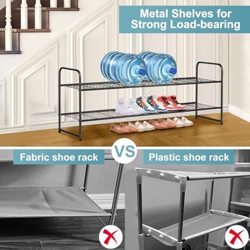 - 【The More Stable. the Better!】 Shoe rack for entryway made of anti-rust metal pipes and wired grid. strong load-bearing (each layer can bear about 11-15 lb). heavy duty shoe rack is different from the cloth shoe rack that sags obviously when shoes are put in; Also can store water bottles. drinks or small kitchen appliances;