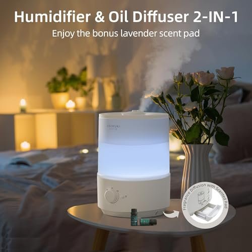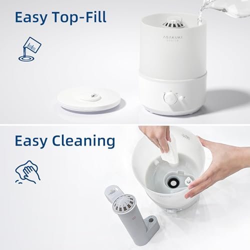 ASAKUKI Humidifiers for Bedroom. 3L Top Fill Cool Mist Air Humidifier & Aroma Diffuser with Night Light for Baby Nursery & Plants. Ultrasonic Quiet. Easy Clean. Auto Shut-Off. BPA Safe. 30H