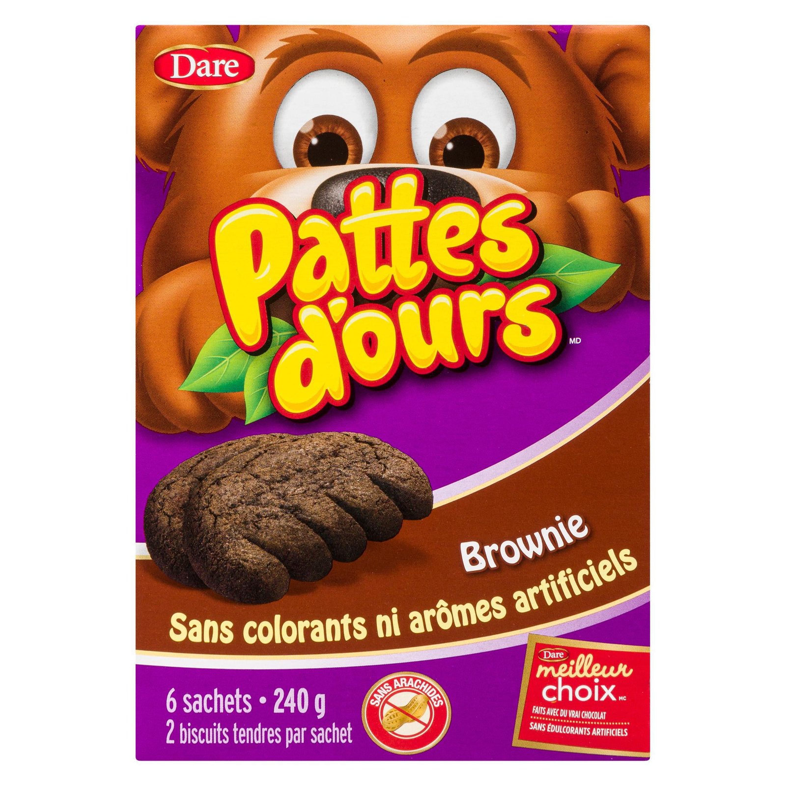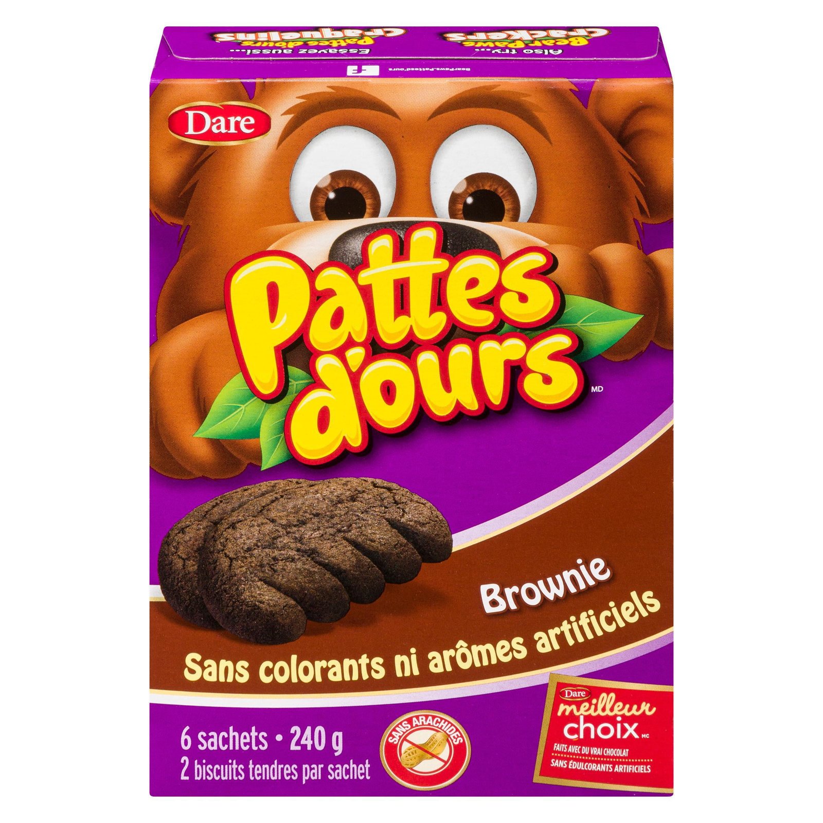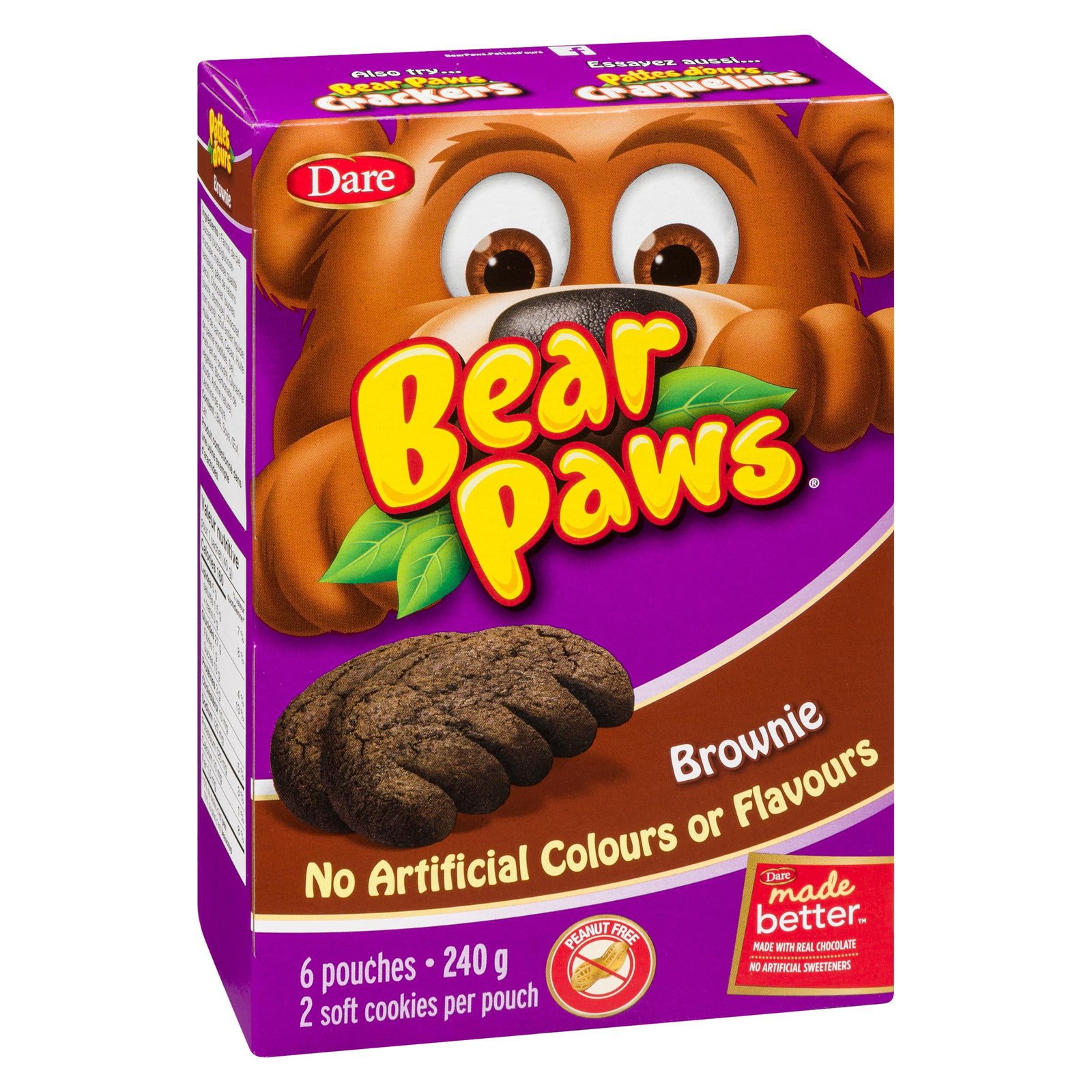 Kids love Bear Paws Brownie cookies. and parents do too! That’s because each soft cookie is made better with real chocolate and no artificial colours. flavours or sweeteners. These delicious cookies are wrapped two per pouch. so they stay moist and chewy. You can pack them in the lunch box for an easy snack. enjoy them at home or on the go. Bear Paws Brownie cookies are peanut-free.