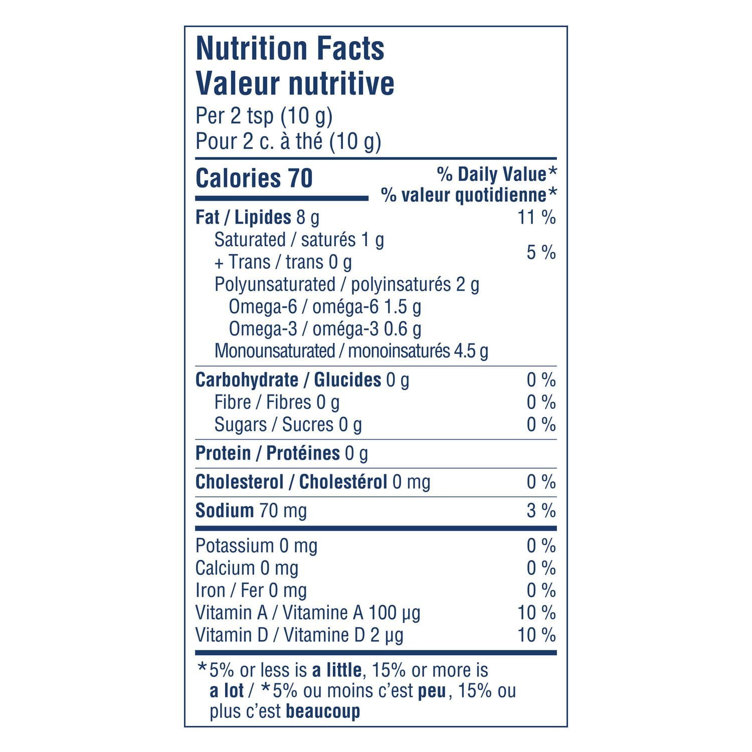 is part of healthy eating. A diet low in saturated and trans fats may reduce the risk of heart disease. Canada’s Food Guide recommends including a small amount (30 to 45ml or 2 to 3 tablespoons) of unsaturated fat each day and this includes the oils in Becel. a soft. non-hydrogenated margarine made from plant-based oils (avocado . canola and sunflower oils).•Lifestyle & Dietary Needs: