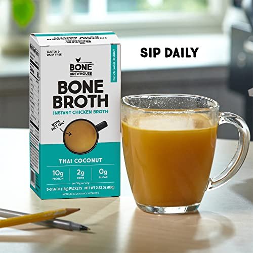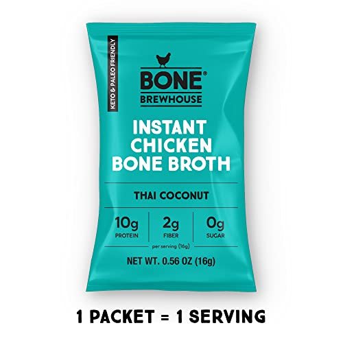 Bone Brewhouse – Chicken Bone Broth Protein Powder – Thai Coconut Flavour – Keto & Paleo Friendly – Instant Soup Broth – 10g Protein – Natural Collagen. Gluten-Free & Dairy free – 5 Individual Packets