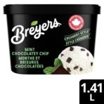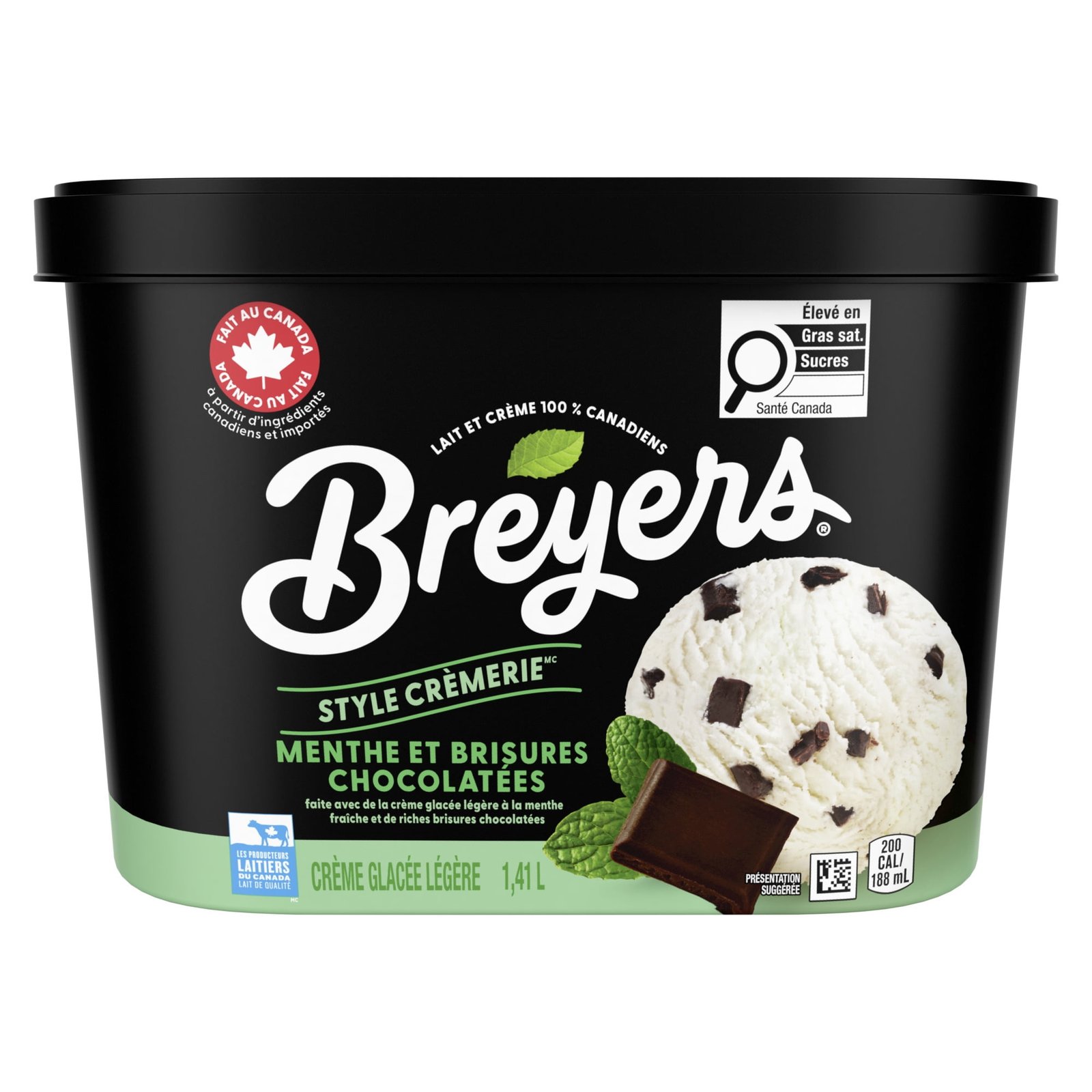 Discover the delightful taste of Breyers Creamery Style Mint Chocolatey Chip Light Ice Cream. Crafted with real peppermint and cocoa. this ice cream offers a cool and invigorating mint flavour that will satisfy your cravings. Perfect for enjoying on its own or as a complement to your favourite dessert. it’s a versatile treat that fits any occasion. Whether you’re having a cozy family night in or celebrating a special event. this light ice cream is sure to be a hit with everyone who loves a crisp. minty taste. Treat yourself and your loved ones to the refreshing experience of Breyers Creamery Style Mint Chocolatey Chip Light Ice Cream today. Breyers has been a staple in Canadian freezers for over 30 years. When you buy Breyers. you know you are buying a dessert that uses the highest quality ingredients in all our ice cream and frozen dessert recipes. In 1866. William Breyer took his passion for creating high-quality desserts and set out to start his very own brand of ice cream – Breyers. Thanks to his commitment to delivering delicious ice cream using only local and simple ingredients. the Breyers brand was soon loved by customers far and wide! Today. Breyers has committed to using flavours and colours from only natural sources. sustainably farmed fruit and vanilla. and Canadian milk and cream. Breyers is proudly made in Simcoe. Ontario. using 100% Canadian Dairy.