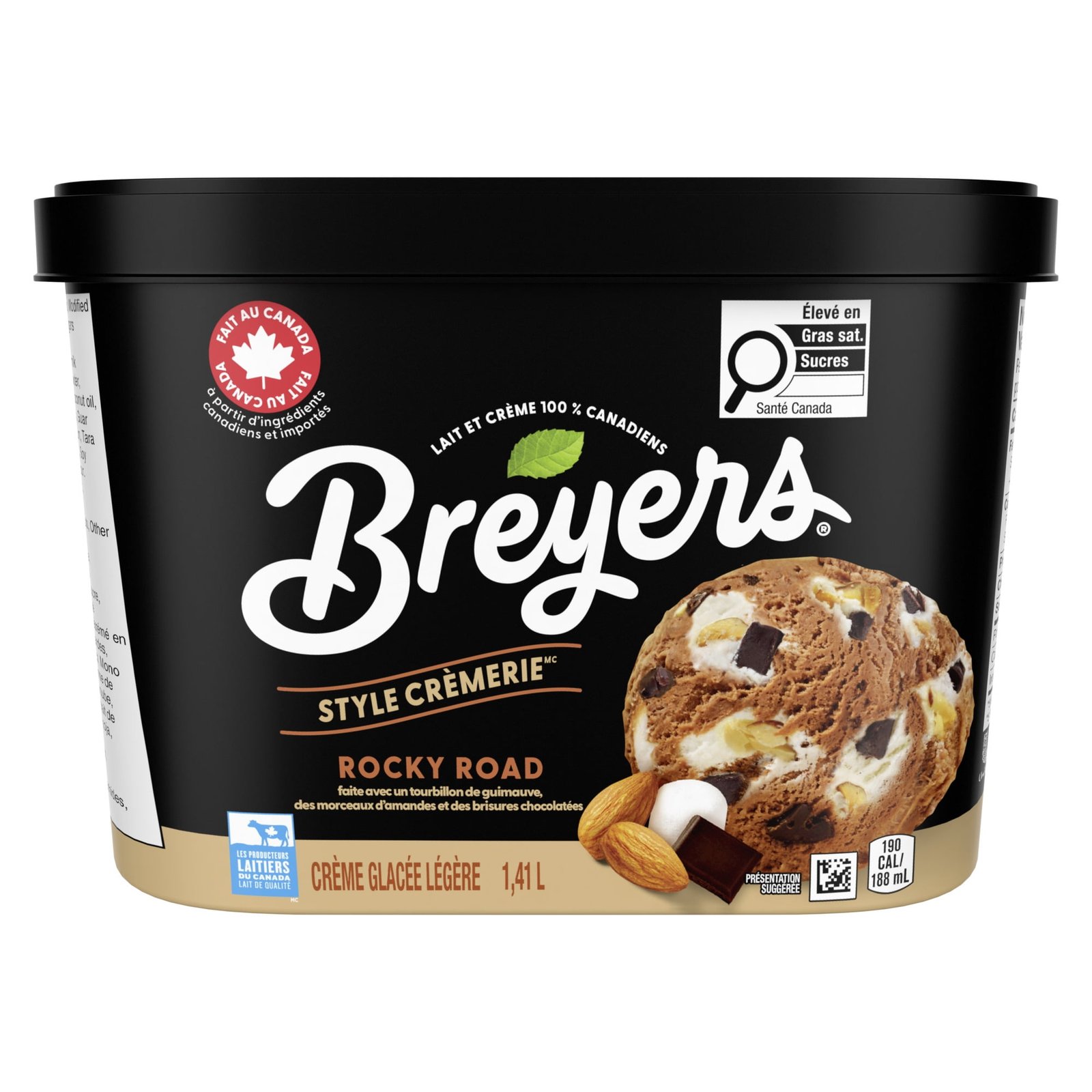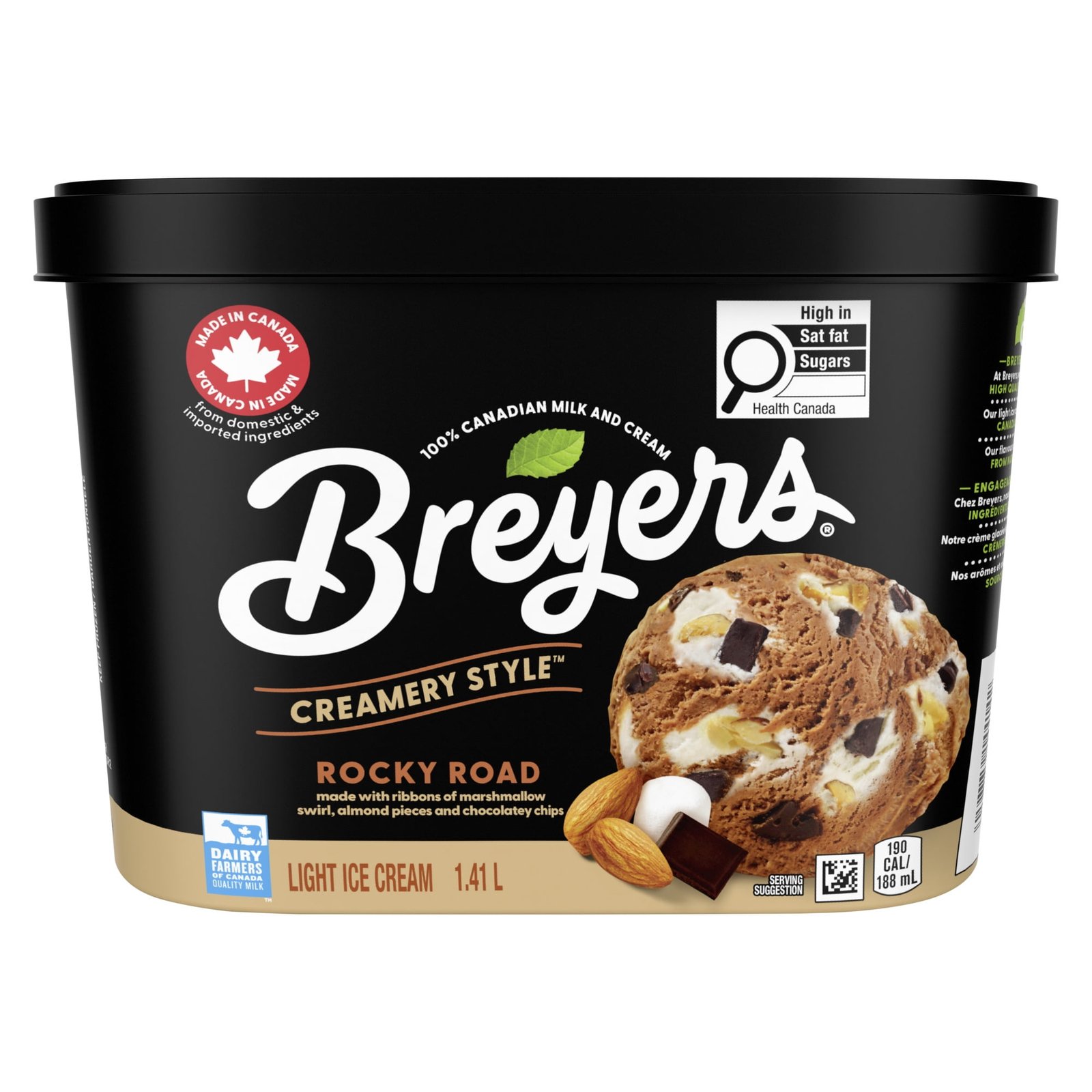 Discover the delightful taste of Breyers Creamery Style Rocky Road Ice Cream. a treat crafted with care and quality ingredients. Each spoonful is a journey of flavour. featuring rich. real cocoa that provides a deep. satisfying chocolate taste. The experience is elevated with swirls of fluffy marshmallow. adding a sweet and creamy texture that perfectly complements the cocoa. To make it even more special. we’ve included real almond pieces. offering a delightful crunch that contrasts beautifully with the smoothness of the ice cream. And let’s not forget the chocolatey chips scattered throughout. adding an extra layer of chocolatey goodness. Enjoy it on its own or pair it with your favourite dessert for a delightful experience. Whether it’s a cozy family night or a special celebration. it is a treat everyone will love. Breyers has been a staple in Canadian freezers for over 30 years. When you buy Breyers. you know you are buying a dessert that uses the highest quality ingredients in all our ice cream and frozen dessert recipes. In 1866. William Breyer took his passion for creating high-quality desserts and set out to start his very own brand of ice cream – Breyers. Thanks to his commitment to delivering delicious ice cream using only local and simple ingredients. the Breyers brand was soon loved by customers far and wide! Today. Breyers has committed to using flavours and colours from only natural sources. sustainably farmed fruit and vanilla. and Canadian milk and cream. Breyers is proudly made in Simcoe. Ontario. using 100% Canadian Dairy.
