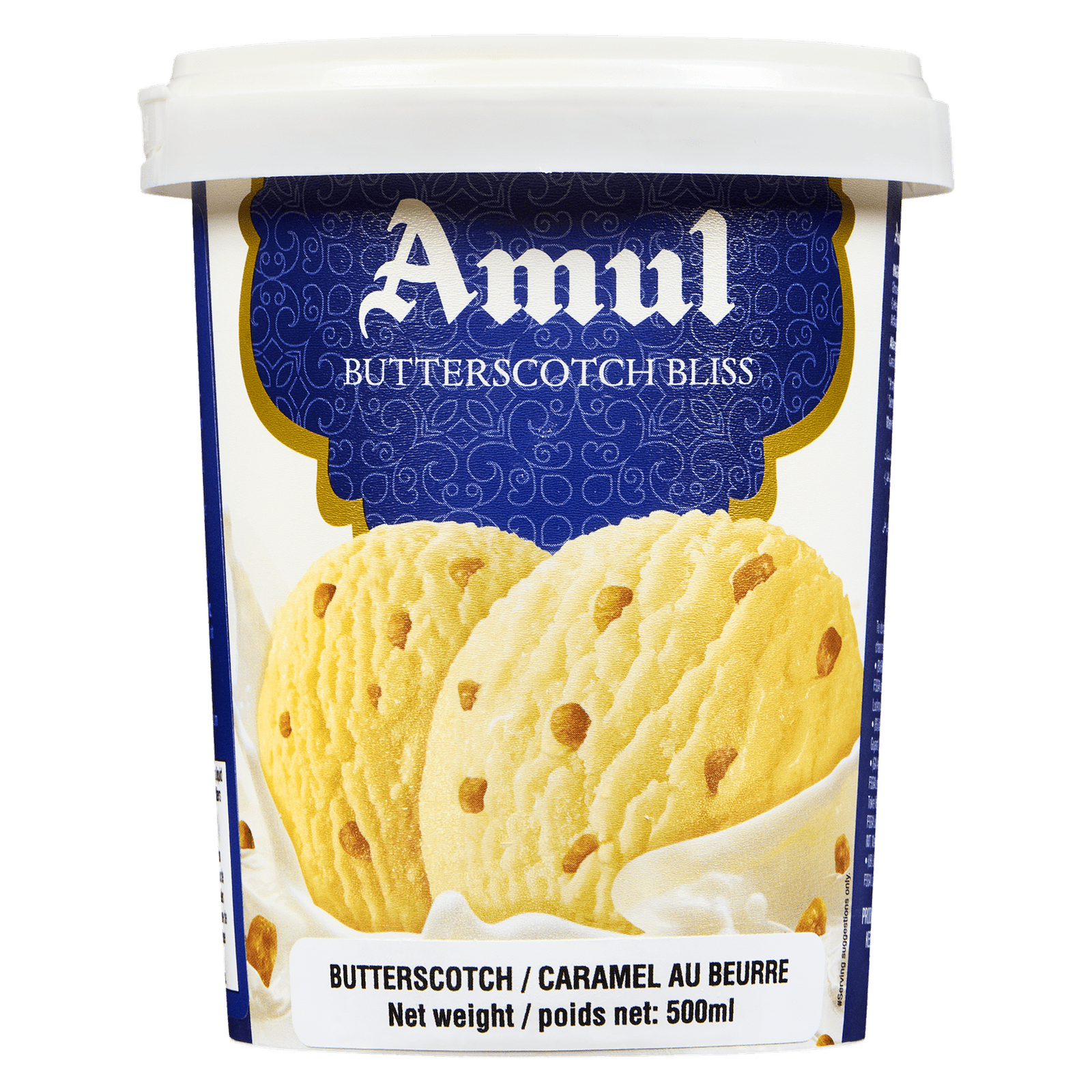 | Ingredients | Milk. sugar. caramelized cashew (sugar. cashew pieces. liquid glucose. ghee). emulsifier (mono & di-glycerides of fatty acid). stabilizers (carrageenan. cellulose gum. xanthan gum. guar gum). tartrazine (synthetic food colour E102). artificial butterscotch flavour added. |