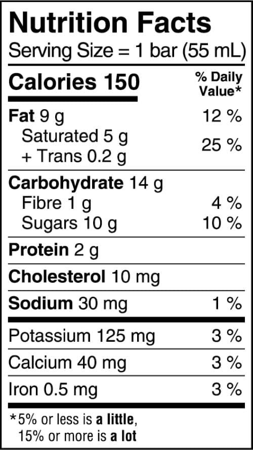 | Ingredients | Ice Cream: Sugars (sugar. glucose). Fresh cream. Modified milk ingredients. Mono and diglycerides. Carob bean gum. Cellulose gum. Guar gum. Carrageenan. Vanilla extract. Natural flavour. Coating: Chapman’s milk chocolate (sugar. whole milk powder. unsweetened chocolate. cocoa butter. lactose [milk]. soy lecithin. vanilla extract). Coconut oil. Soybean oil. Almonds. |