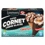 Chapman’s Super Cone Twister – Vanilla and Chocolate Ice Cream with a salty caramel centre. in a Box.. CHAP SALTY CAR TWISTER
