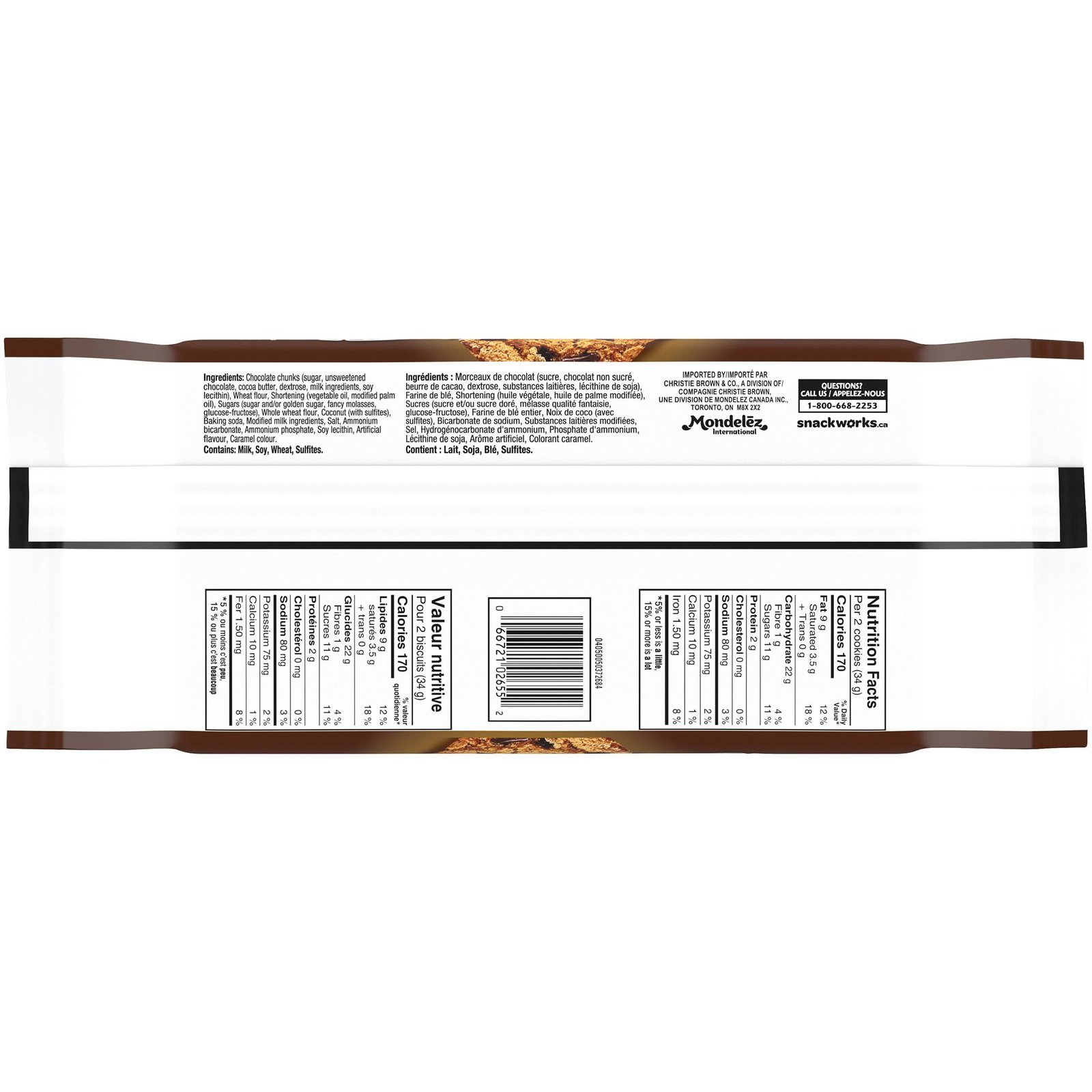 | Fabric Property | • Resealable 251g pack of CHIPS AHOY! Chunks Chocolate Chip Cookies. • It’s no surprise that the scrumptious CHIPS AHOY! Chunks Chocolate Chip Cookie is beloved by both kids and adults. • Full of delicious chocolatey chunks. these crowd-pleasing cookies are crammed with chunks of real chocolate to satisfy any sweet tooth. • The resealable pack with easy-pull tab keeps cookies fresh and is perfect for snacking and sharing. whether you’re at home. school. the office. or on the go. • Kosher cookies. Each serving of cookies is 170 calories. |